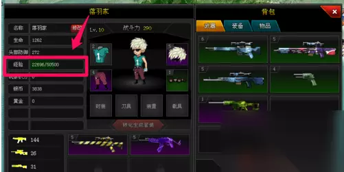 2. 经验查看与进度管理 返回主菜单点击【背包】(见下图),可实时查看角色当前经验值及升级进度。