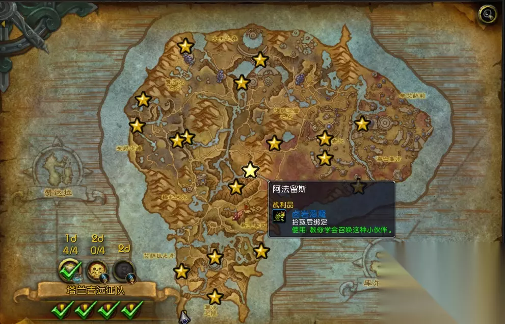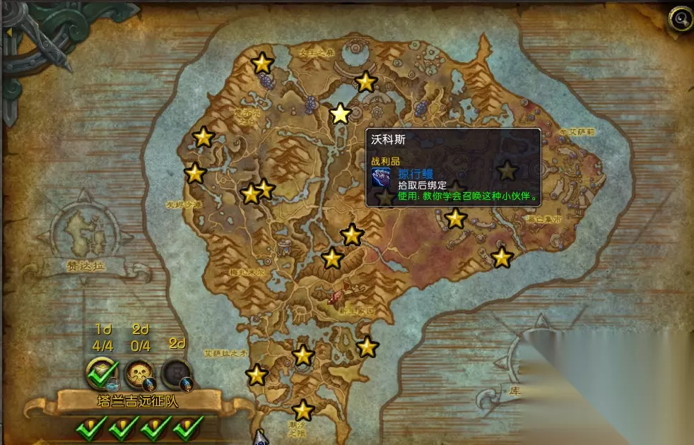 星星表示这个稀有你没杀而且你有拾取 对号表示这个稀有你杀过了而且没拾取,要等重置后(每天)才能再杀 这张地图是优先去进行探索的地点,整个剧情就在这里发生,然后就是两周后的团队副本永恒宫殿,都是在这张地图进行,剧情带着你慢慢了解娜迦然后告诉你最后阻止艾萨拉这么个过程,其实就是要你在这张地图找盟友对抗娜迦,进入地图以后并没有那么多日常任务给你做,你要做的就是先找好小弟,然后去打怪触发任务,每天可以触发两次,具体操作还要看周四的正式服开启后,然后就是刷声望,前期刷声望是有限的,建议把剧情任务做到不能做的时候,就去打岛上的娜迦,会触发其他的一些任务。