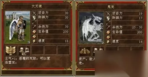 首先出场时的光明阵营的首领人族城堡VS黑暗阵营扛把子亡灵族墓园,这两族作为两大阵营公认最强力的种族,它们的许多兵种都是死敌,不知道是不是育碧刻意这样设计的,譬如双方6级骑兵的大战,5级法师射手的互射以及3级飞行部队的碰撞等等,它们的兵种的设计非常相似。首先我们先看下双方兵力的对比。 1,戟兵VS骷髅勇士。