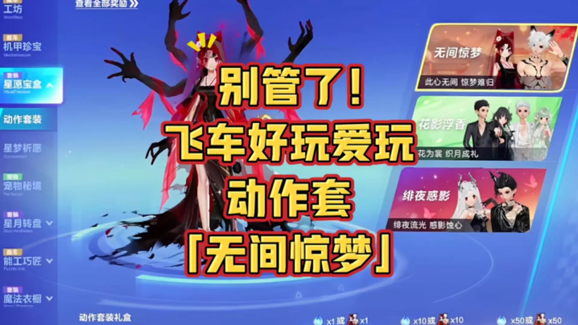 11月5日-11月11日,圣咏羽宴动作套装限时返场寻宝-星愿宝盒,车手们可以使用圣咏羽宴礼盒/星愿水晶(售价10钻石/个)进行抽取获得~