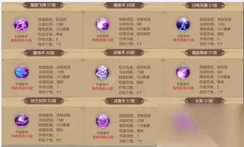 术士的技能分为锁定技和非锁定技,锁定技顾名思义就是单体攻击,一般锁定技的攻击强度较非锁定技要强。但是魔能飞弹属于引导技能需要读条,一旦移动或者受到攻击就会被打断,所以在之后基本会把魔能飞弹其他非锁定技,锁定技和非锁定技可以直接在技能类型中直接查看可得,下面我们来简略的看下术士的所有技能。