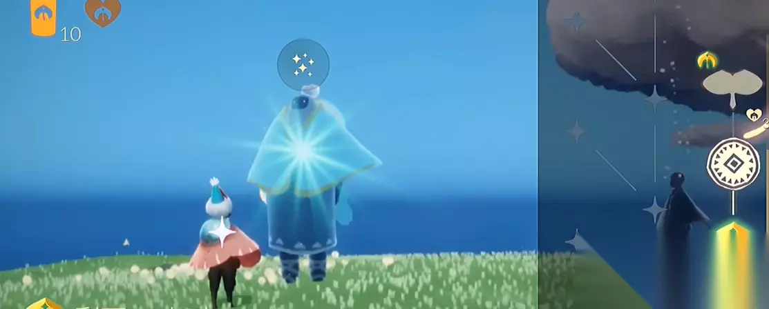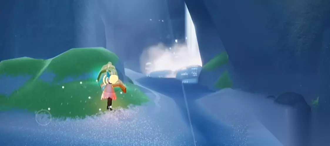瀑布任务,是最容易卡住的地方。咱们先飞到两座山之间的瀑布,直接穿过去就能看到水帘洞,里面藏着第一个编钟。如果能量不够可以借助附近的喷泉飞上去,千万别硬跳。拿到编钟后记得回去找先祖交任务,别忘了领取旁边的小爱心奖励。第三个任务在瀑布下方的洞穴里,顺着水路游进去就能发现,这里建议带上会充电的小伙伴,水里容易耗能量。