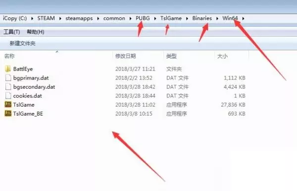 在PUBG/TslGame/Binaries/Win64路径下,也就是下图这个路径;