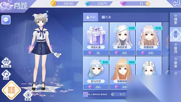 游戏商城是玩家最直接获得服饰的途径,玩家在商店可以购买到发型、套装、徽章等道具,其中需要玩家花费点券、钻石才可以进行购买,点券玩家可以通过参与游戏活动获得,钻书则需要通过充值才可以获得。