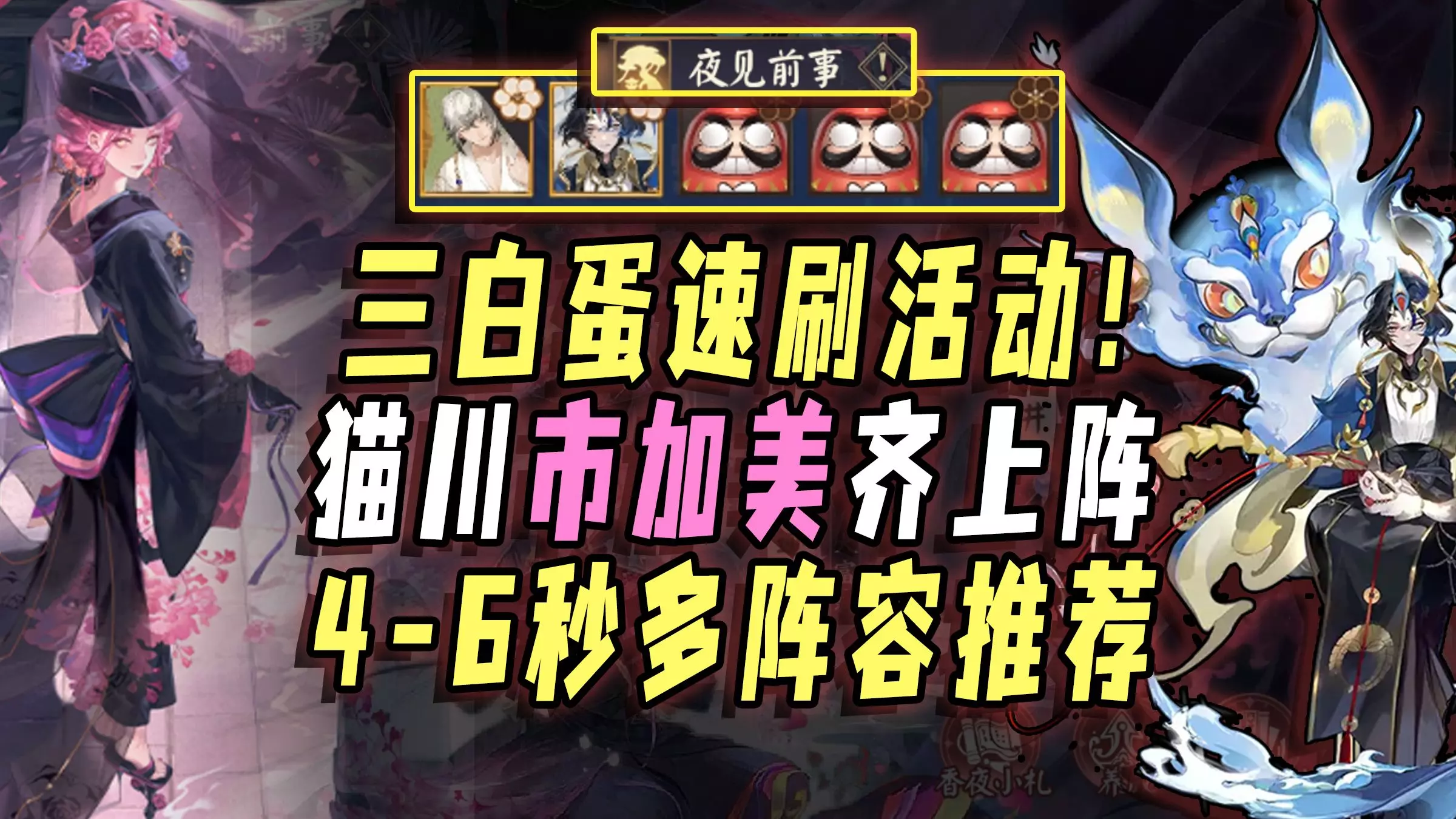 相关游戏:阴阳师 活动:SSR市加美伴生活动三白蛋速刷 素材:颜叙Cyone丶 账号:Dalao魅 ———————— 【普通战】4秒市姐三白蛋: |TA|518…
