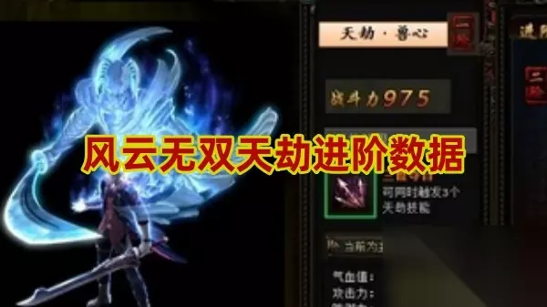 风云无双天劫是可以提供大量属性给角色的,同时还可提升战斗力,许多的小伙伴是不是还不清楚天劫具体要怎么进阶呢?下面小编就给大家带来了天劫的进阶数据一览,感兴趣的玩家快来一起往下看看吧。