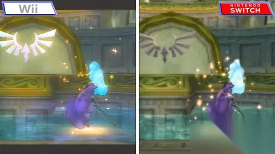 塞尔达传说天空之剑HDswitch版和Wii版对比有什么不一样呢?塞尔达传说系列一直都是任天堂的当家IP之一,那么本次wii移植的天空之剑在switch的表现会怎么样呢?233乐园游戏小编就跟大家对比一下,看完你就知道了。 具体对比 在Wii版的游戏中,玩家使用Wii遥控器Plus来操作剑,双截棍控制器来操作盾牌,而在《塞尔达传说:天空之剑》HD中,经由系统的处理能力获得提升,画面更新率达到每秒60帧,操作也变得更流畅、更直觉。当然,玩家可以左右握着Joy-Con,用右手的Joy-Con操作剑,左手的Joy-Con操作盾牌。除此之外,还可以用双手模拟射箭等动作,享受体感操作专属的紧张战斗。 视频画面: