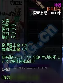 贤者格鲁德宝珠 力量+75、智力+75、体力+75、精神+75、双爆+5%、所有职业lv1~30全部主动技能lv+1(特性技能除外) 账号绑定,永久物品。 腰带宝珠