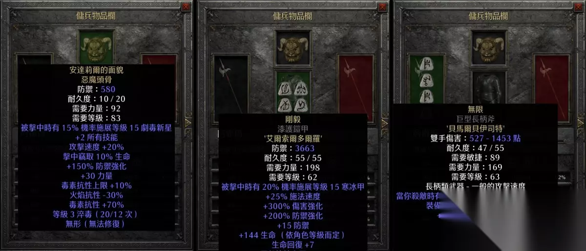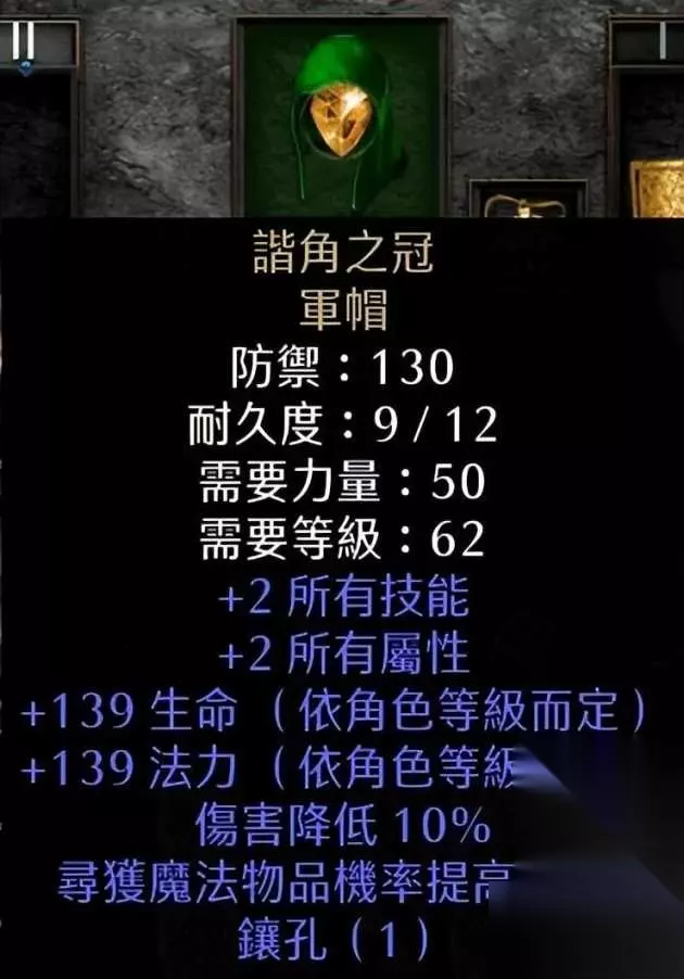 有10F的天堂之拳,同时也有125的FCR裆位。有谜团和军帽的MF,再加上一块基德版和拿各,凑到300-400的MF值不难。加上本身能拉抗性、格挡和防御,突出一个字——硬!贴脸超市菜刀队都不怕的巨硬!