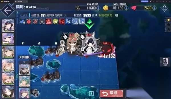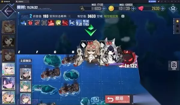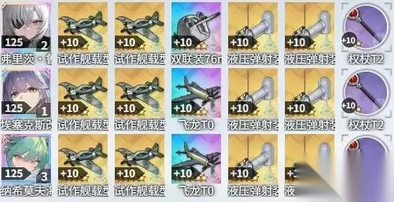 其他关卡 16-1-2,和-3-4不同的是这两关有航母,而且主力会放照明弹,所以前排生存压力会稍微大一丝。 第一队道中全清