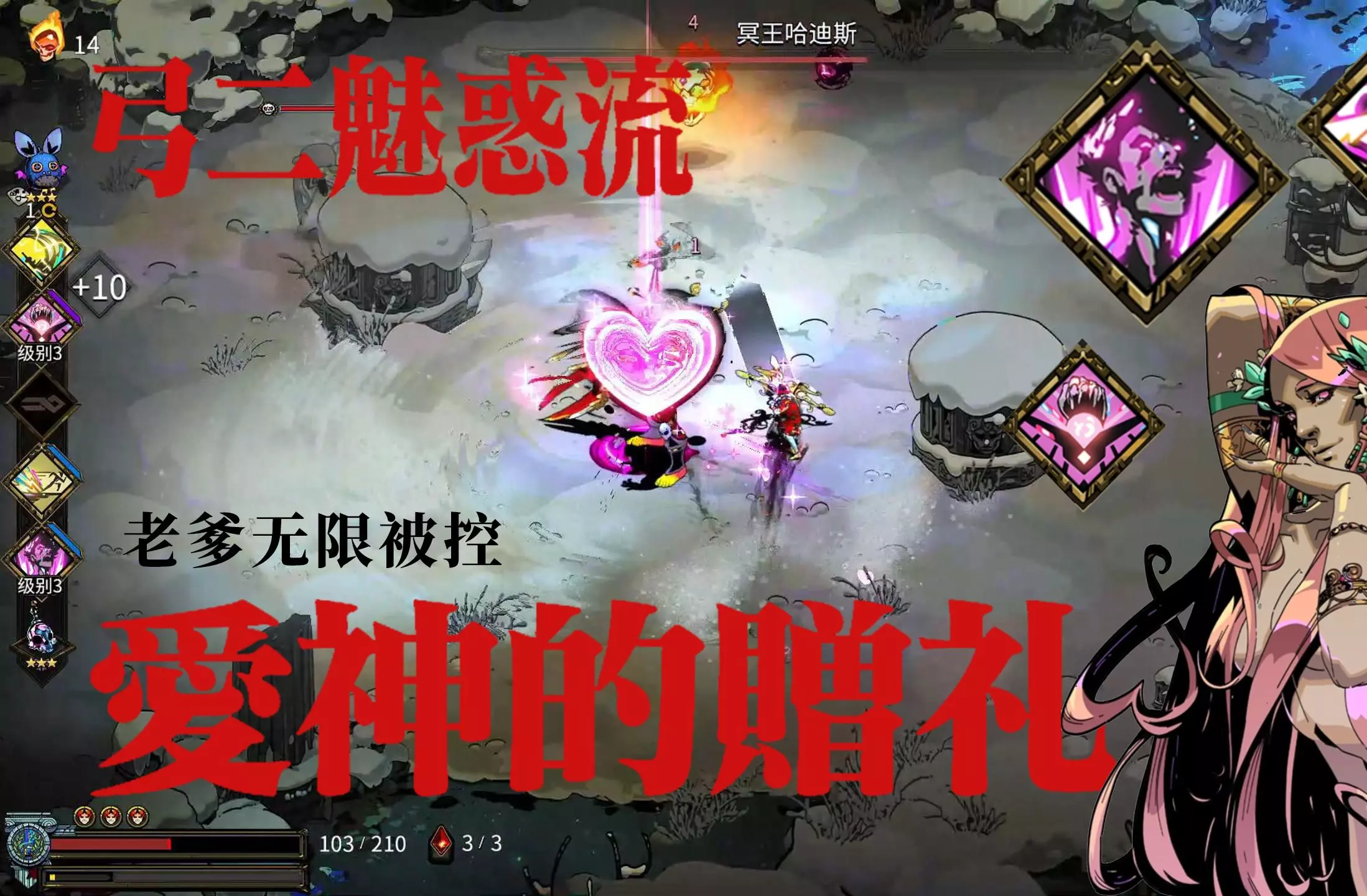 刮痧但很好玩的一个构筑,边笑边打,如果操作好完全可以无伤杀老爹。主要祝福:爱特、爱大、雷普、胆战心惊(尚方宝剑)、雷爱双重烟熏火燎、拿到爱神传奇走火入魔更好。