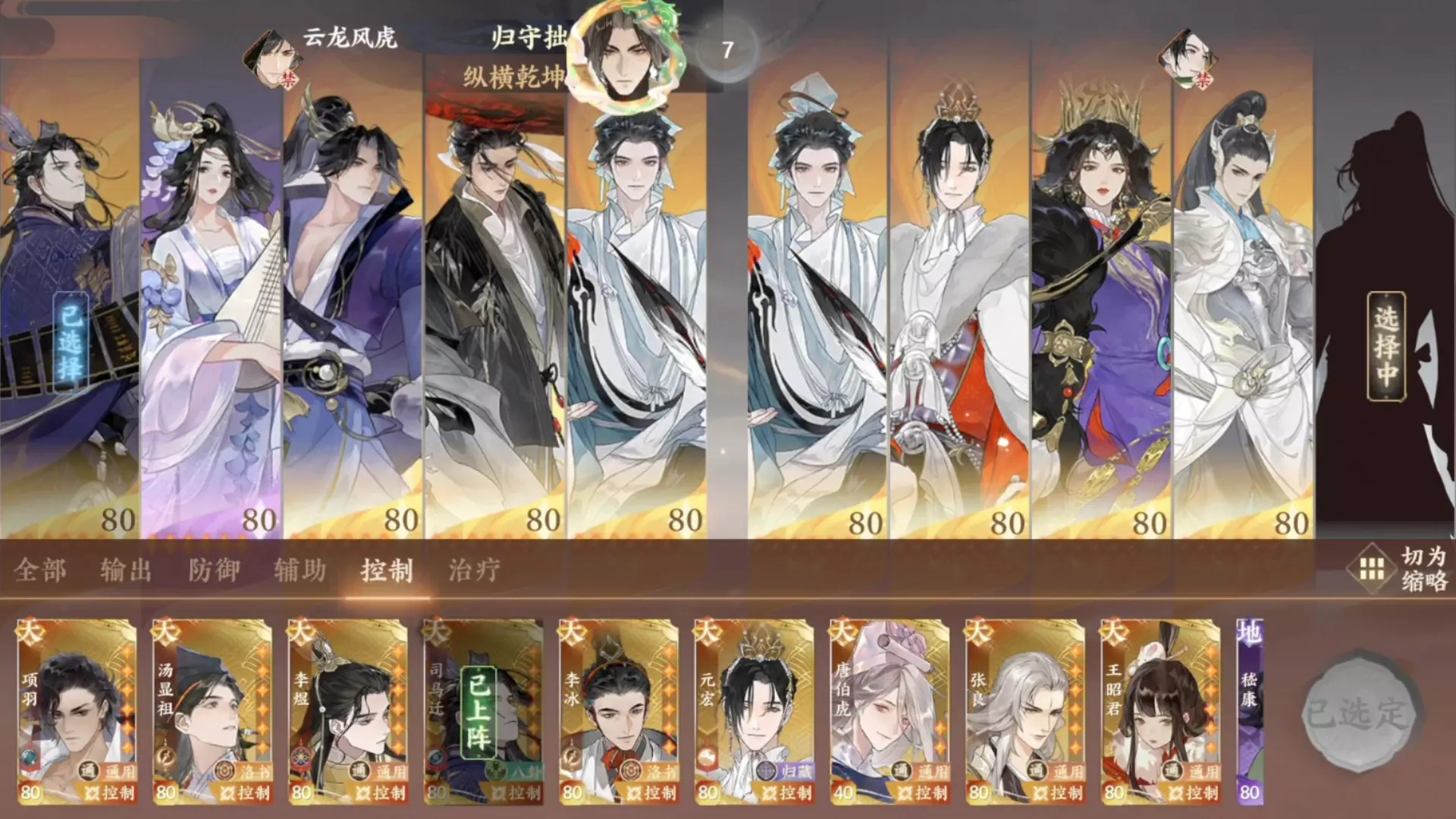 选择任意星级的任意名士