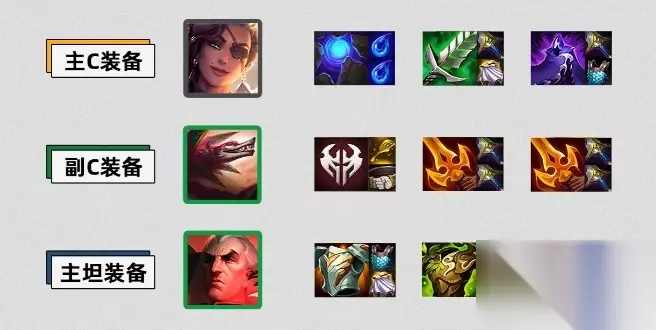 2、莎弥拉带蓝buff、饮血、夜之锋刃,夜之锋刃没有也需要在后期补上,打输出敏捷非常重要。 3、肉装和护盾给前排辅助坦克,斯维因和海克斯带板甲、狂徒。 4、海克斯需要搭配崔斯特使用,能够打出来最佳阵容效果,最好两个一起上场。 5、物理伤害装备给剑魔,纳亚菲利和主C一定要注意站位,按照下方站位调整。