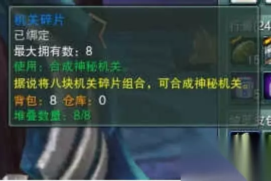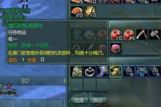 1是去小密室刷精巧的机关部件,不知道是不是我脸太黑,刷了N多次到第15个机关部件的时候,出了任务物品——精巧的机关部件。如图