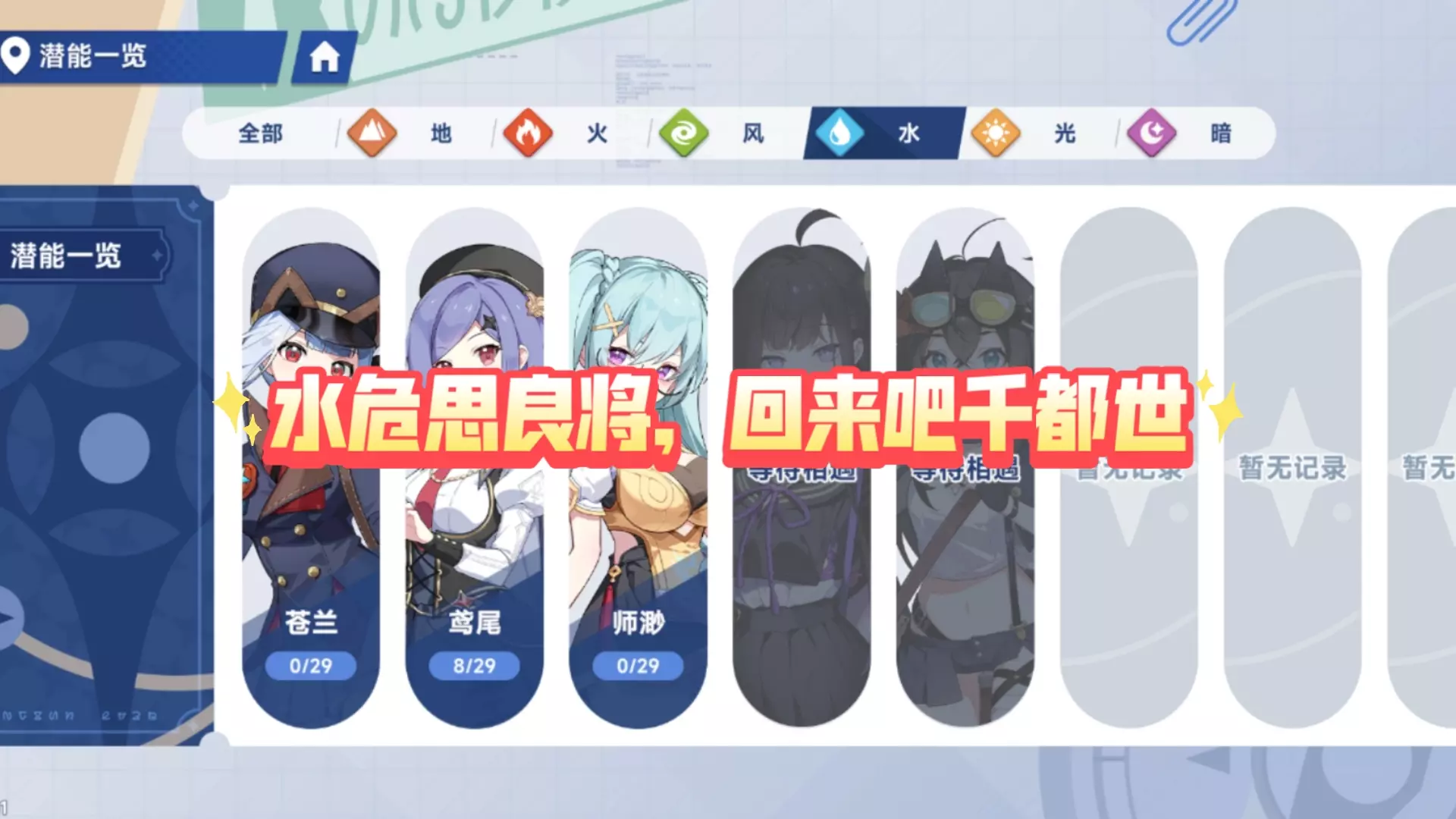 这篇帖子围绕游戏《星塔旅人》展开,浅谈了水系角色多娜的队友千都世、苍兰、特丽莎、鸢尾与师渺的当下环境现状,提及千都世强度尚可,还谈到角色替代、活动相关以及环境更迭对角色的影响等内容。