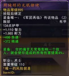 如字面意思。提升痛楚的伤害也能提高回片速度。对痛苦的单体、多线、AOE都有提升。 斯特顿的无眠镣铐(护腕):