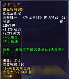 如字面意思,当目标受到火雨效果时候,目标身上会有一个受到火焰伤害提升7%的debuff。 恶魔 循环仪式(肩膀) :