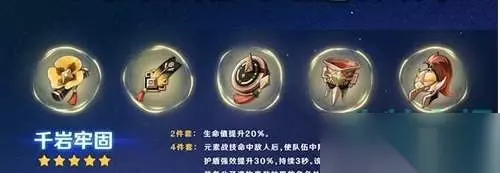 第三套:千岩套/宗室套 时之沙-元素充能,空之杯-攻击力百分比,理之冠-攻击力百分比 副词条:元素充能>攻击力>精通。 搭配原理: 第三套圣遗物的选择主要是用来提升额外的攻击力效果,但是对于圣遗物的充能存在一定的限制。