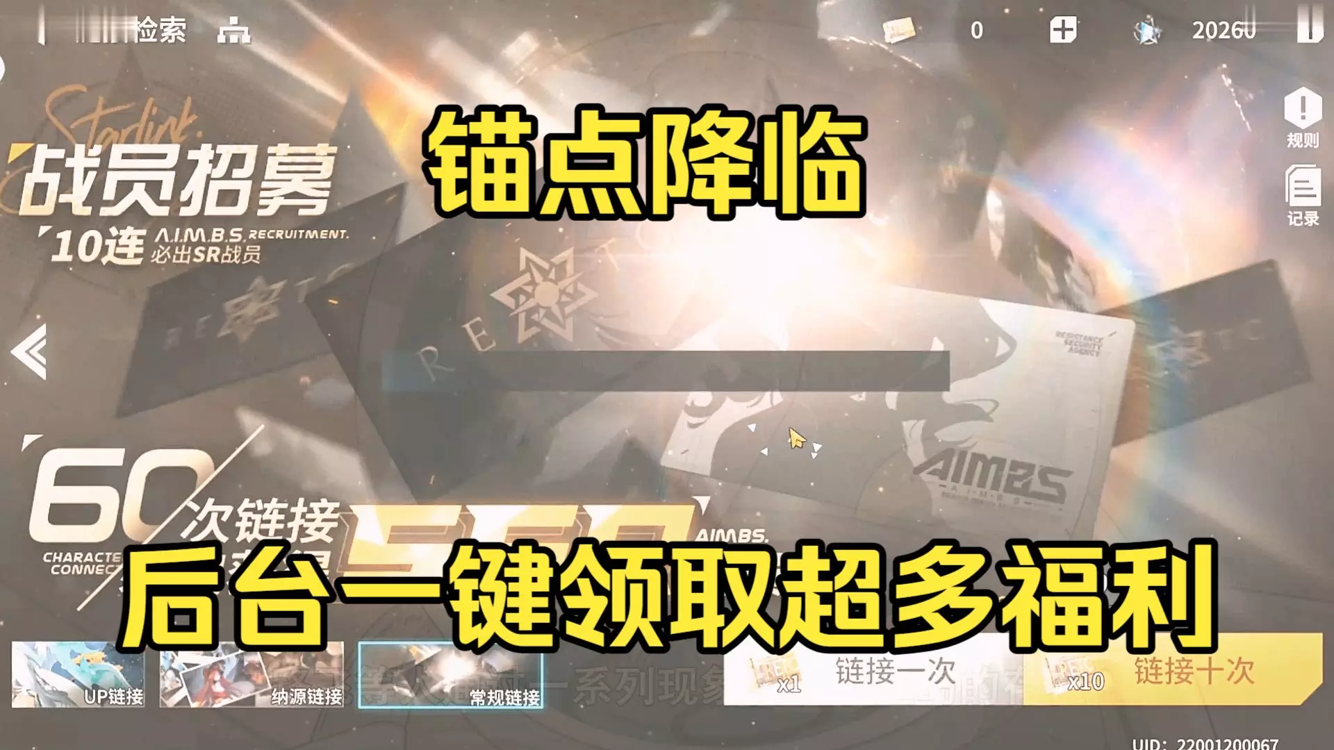 这是《锚点降临》终极畅玩版的影视剪辑,该版本解锁后台全功能,支持一键满级满资源,展示了游戏内的场景、资源获取界面以及主界面、战员选择界面等内容。