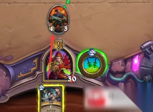 步骤六:对巫医随从使用法术卡牌背刺。
