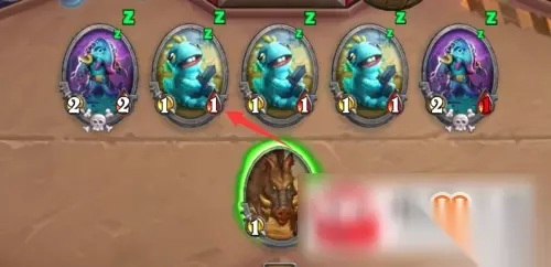 步骤二:我们先使用石牙野猪随从攻击对面的鱼人宝宝。