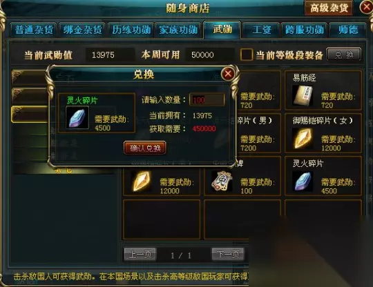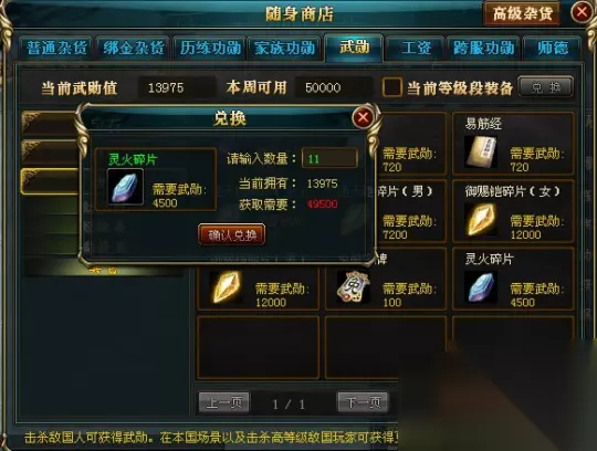 相较于这两张图片,大家应该一目了然了!武勋商城,现在已经150+的玩家,每周能用的武勋值为5W!全部兑换灵火碎片的话,能够兑换11个,剩余500武勋!而兑换一件灵火战铠的需要武勋值为45W,需要花费9周的时间!这还是一个相当理想的状态下,能够完成的目标! 理想状态是指的什么,就是说你的武勋值足够多!这是个什么概念!45W的武勋值,想杀人获得的话,一个人25点武勋值,需要你傻18000人,而且不能重复!等级不能低你太多!老区能积攒如此多武勋没有使用的玩家,基本上都是高级永久在身,又或者是至尊永久批身的!用不到这玩意!