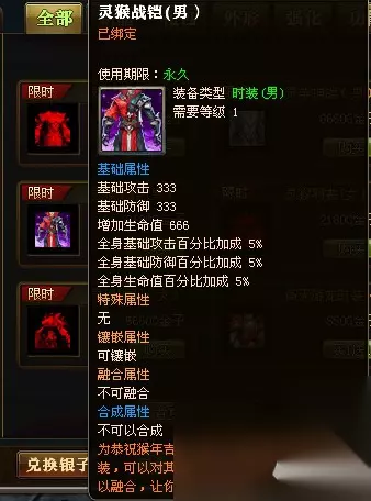 相较于普通的永久时装的属性,灵火时装的属性比起消费金子买的永久时装来说,百分比加成要稍微低一点!