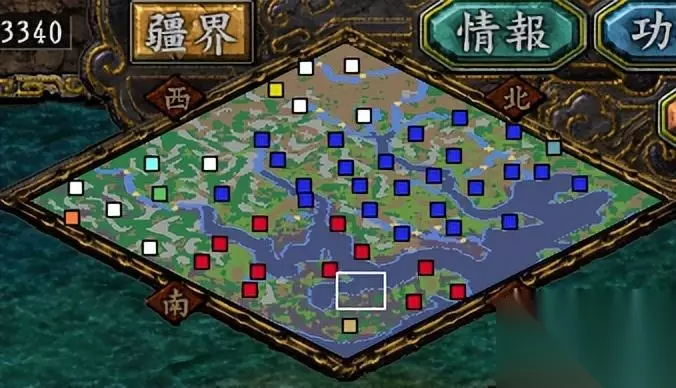 从地图看,孙吴势力简直就成了偏安一隅的小弟。没办法,自从借荆州之后,孙吴势力可供扩张的方向就不多了,一个是南方的交州(本作只有一座城),另一个方向就只有死磕曹操。结果和曹操势力连续大战几回,互相拖慢了发展,就便宜了刘备,让他从小弟成长为曹操最大的敌人。