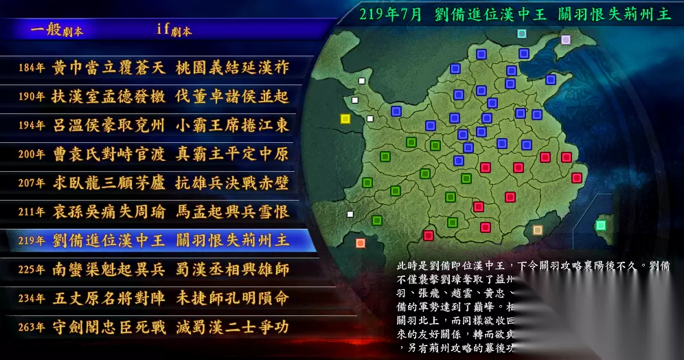 3、219年刘备进位汉中王 刚才剧本是曹操的最巅峰,这个剧本则可以说是刘备的最巅峰时期。
