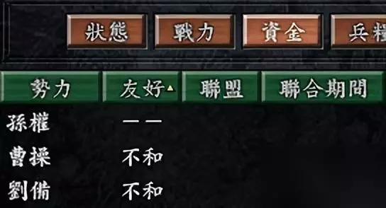 当然这里最为人诟病的就是孙吴的“背刺”,几乎完全断绝了日后收复两京、北伐统一的希望。 但其实剧本开始的时候,孙权已经和刘备非联盟的关系了。而且也没必要跟曹操同盟,完全可以凭自己实力,同时向两大势力出击,这才是最好玩的地方。如日中天的刘备(拥有五虎将、诸葛亮、法正等),虽丢失汉中但实力强横的曹操,都成为自己的对手,想想也兴奋吧!
