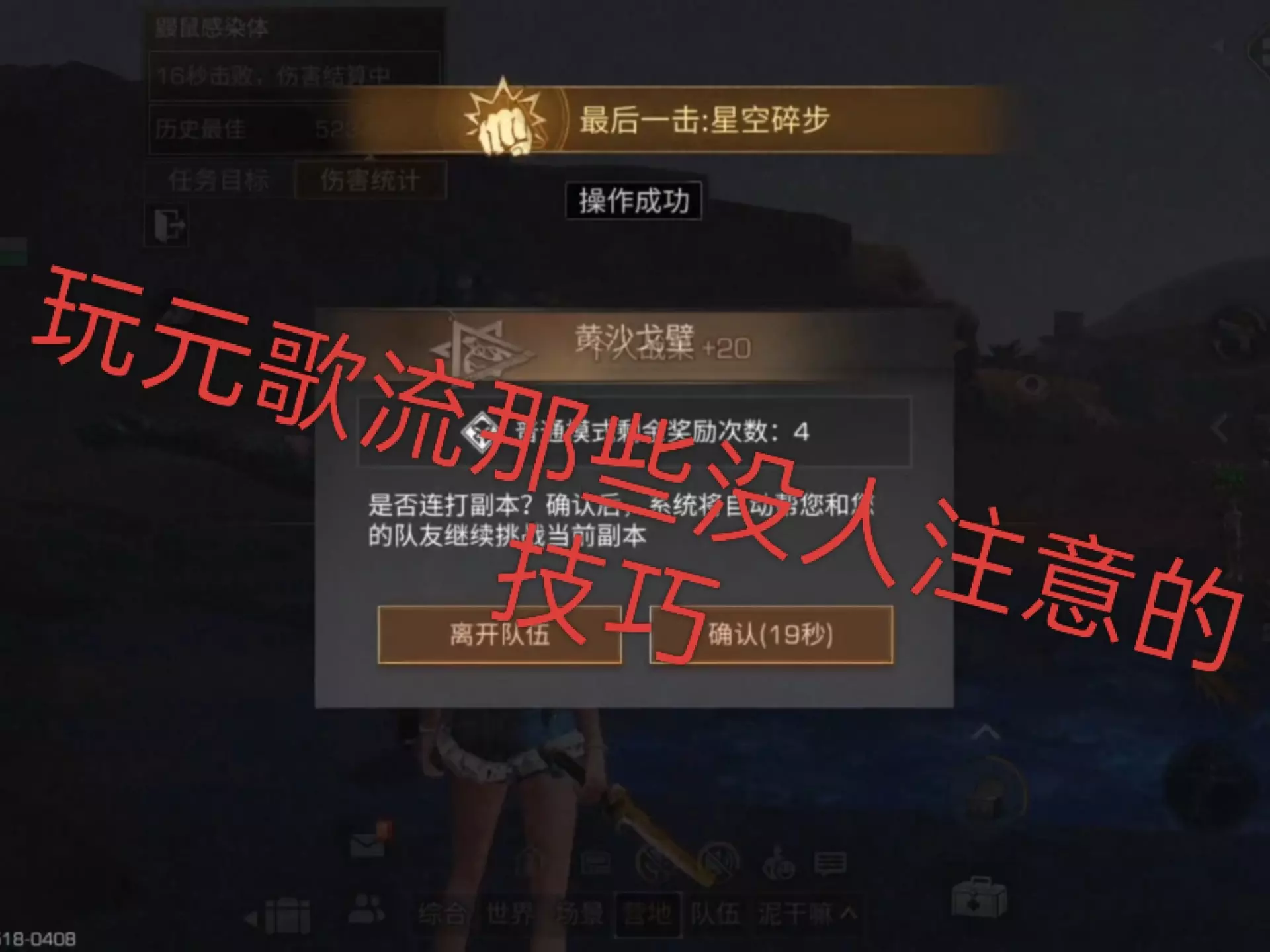 这是《明日之后》的游戏内容,展示了玩家空手通关黄沙戈壁副本的过程,过程中要击败感染者、守卫佣兵等目标,还能看到伤害统计等游戏界面信息。
