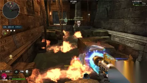 图中机关为塔防电墙,却在喷火。