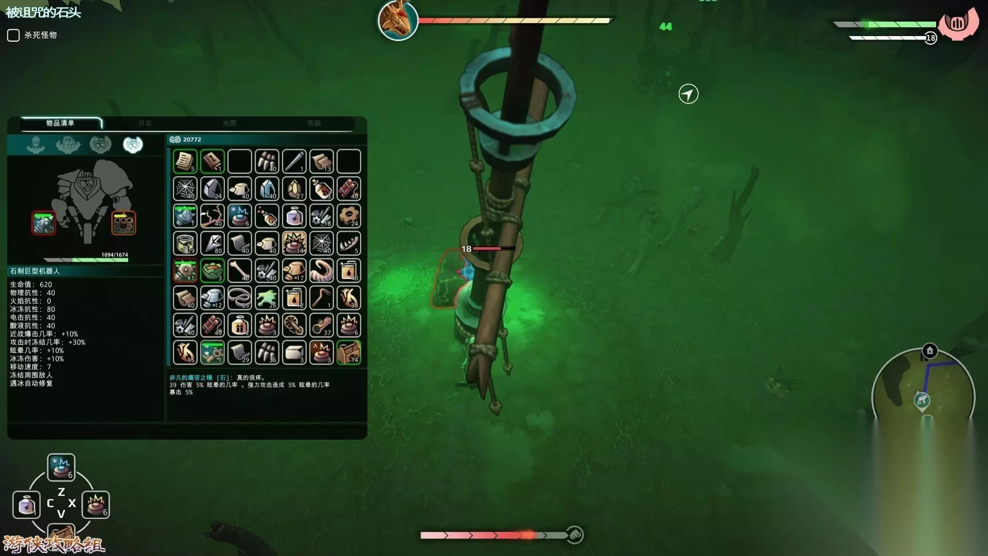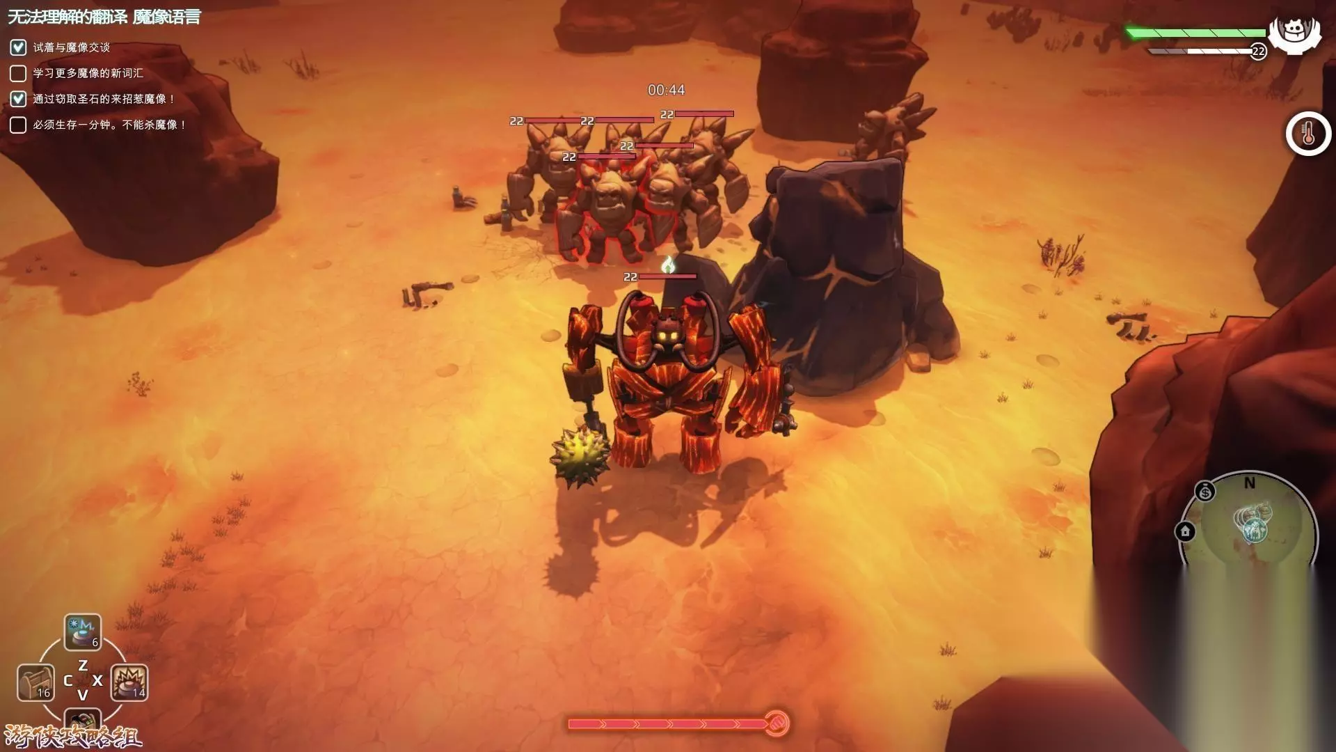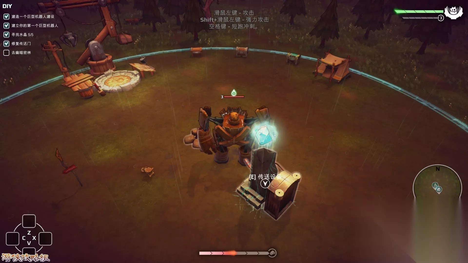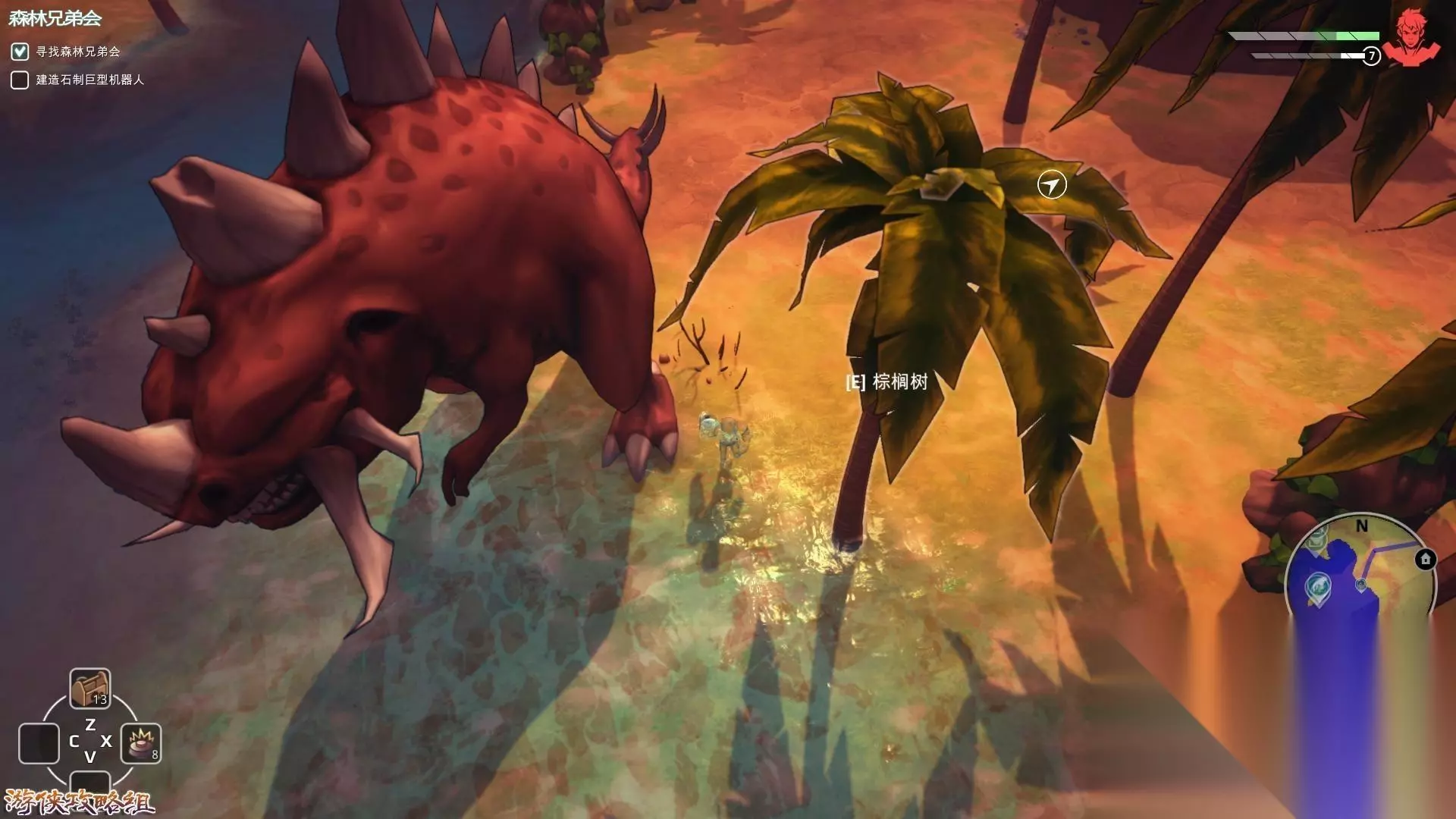 tips:尽量避免同怪物交战,特别是看起来像土著的怪物,其能进行远程攻击,木头机器人很容易损坏。
