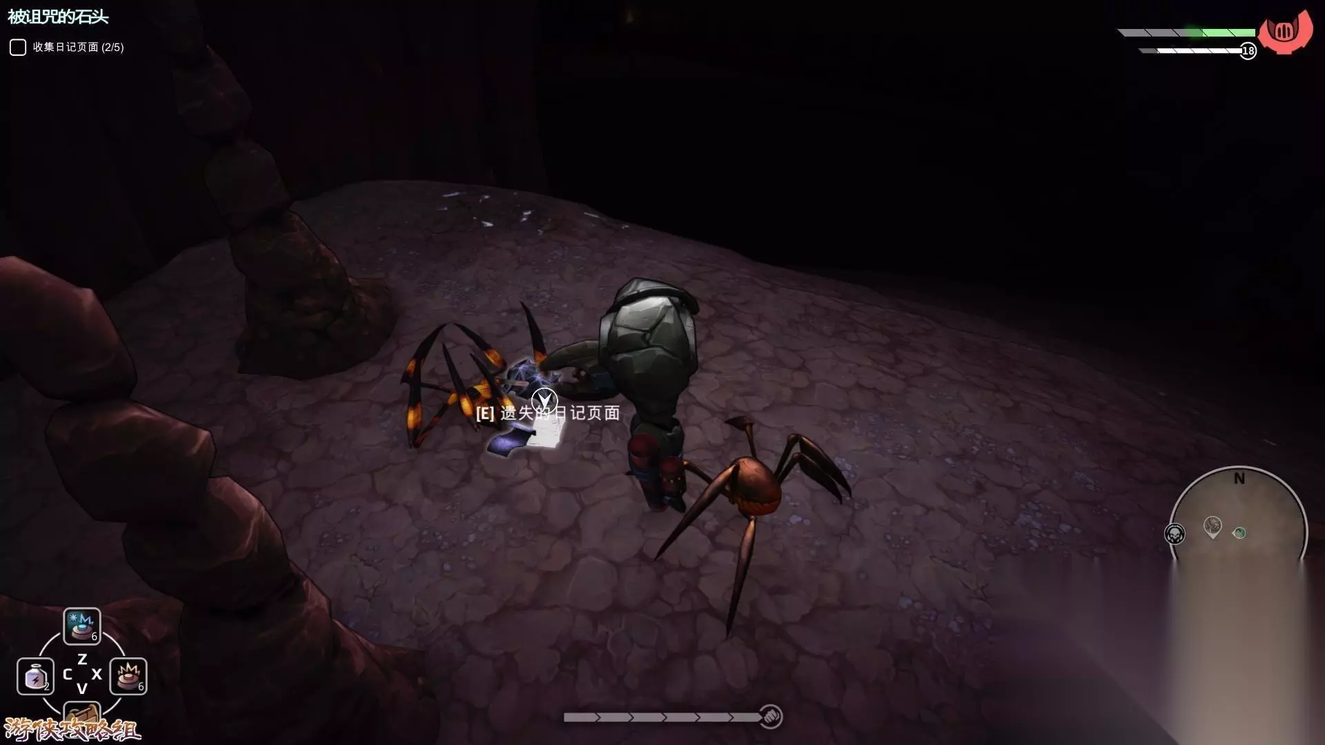 2,为了找到携带被诅咒石头的人,依照提示进入地牢,找到四页日记(地牢中的火焰蜘蛛非常多死,后会自爆伤害很高,尽量避免战斗)