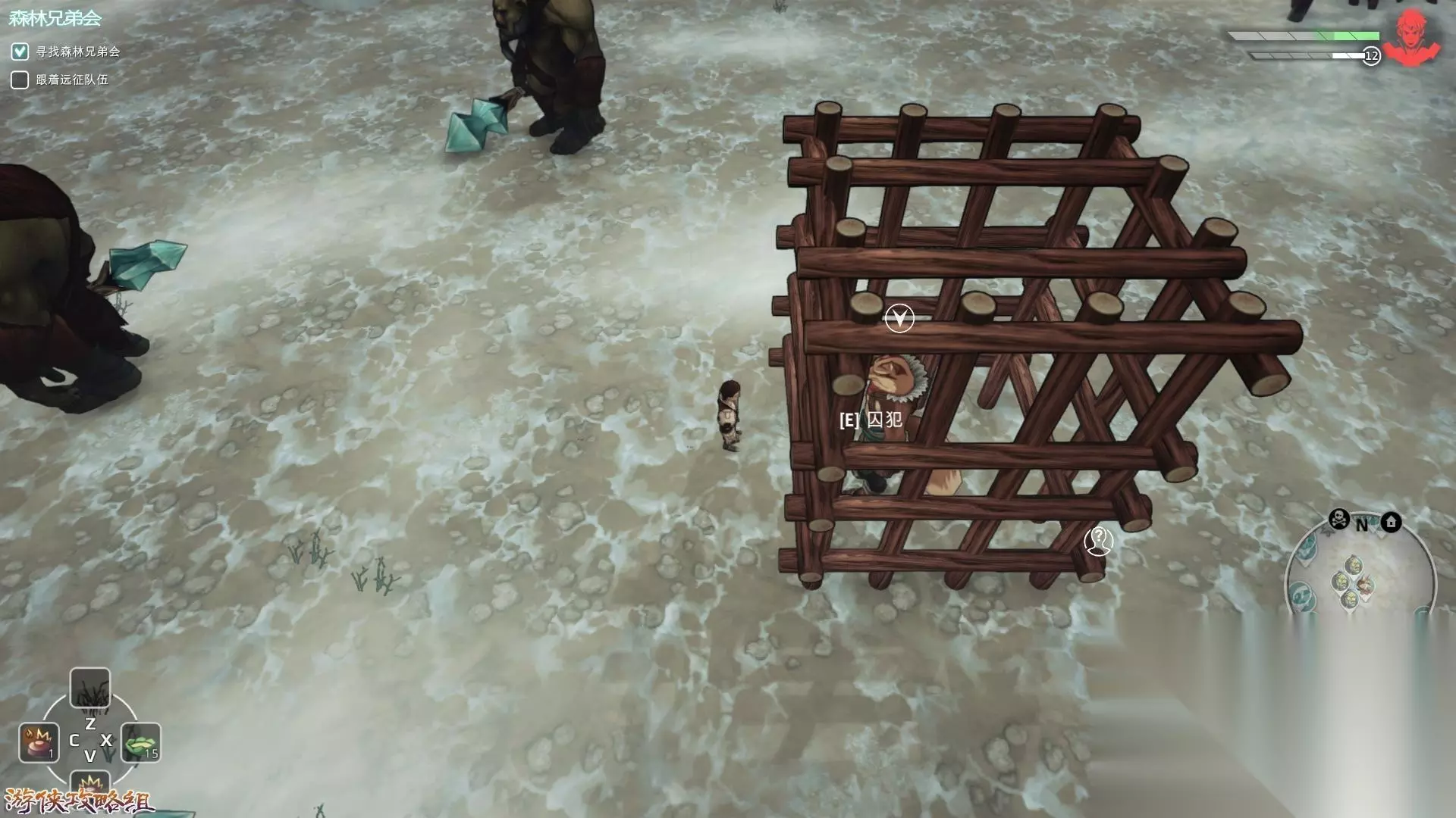 地图二:冬天的牙齿 回到基地进入地图冬天的牙齿,跟随指示找到被囚禁的森林外交官,将其解救出来(tips:选择与食人魔交涉,对话全部选择第一个选项即可)。