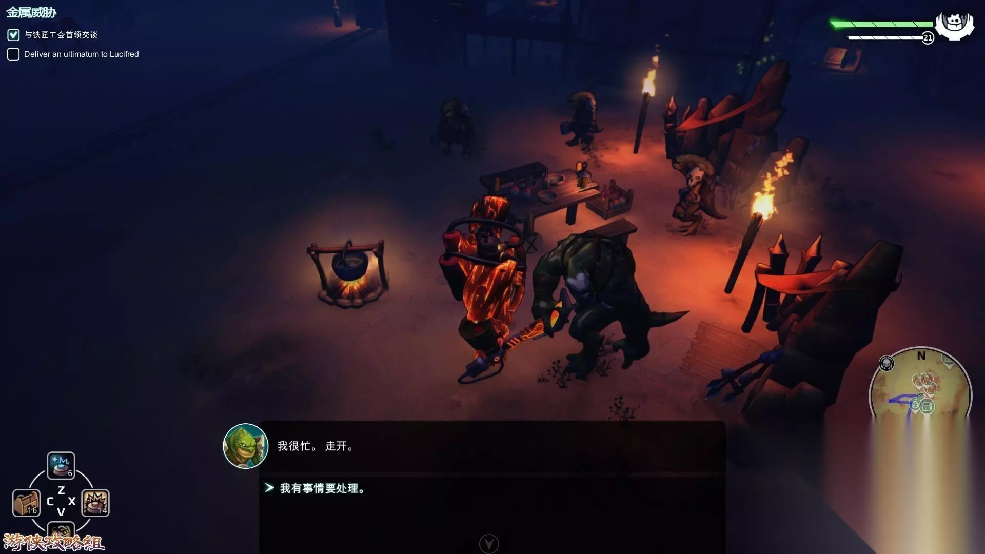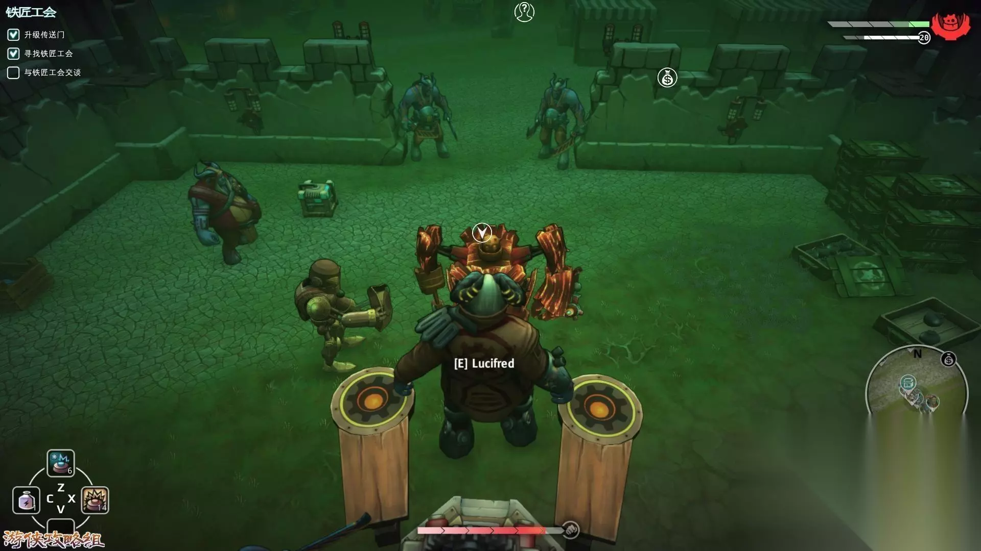 任务五:铁匠工会 剧情简介:在收藏家的建议下我们前往铁匠工会所在的城市,严峻熔炉,不过好像铁匠头领有着自己的烦恼,我们需要先帮助他们才有回报。。。 攻略要点: 地图一:严峻熔炉 跟随提示找到铁匠工会所在的城市,路上的怪物非常烦人尽量避开,同Lucifred和旁边的机器人外交家交谈(非常重要),得到两个任务金属威胁和无法理解的翻译