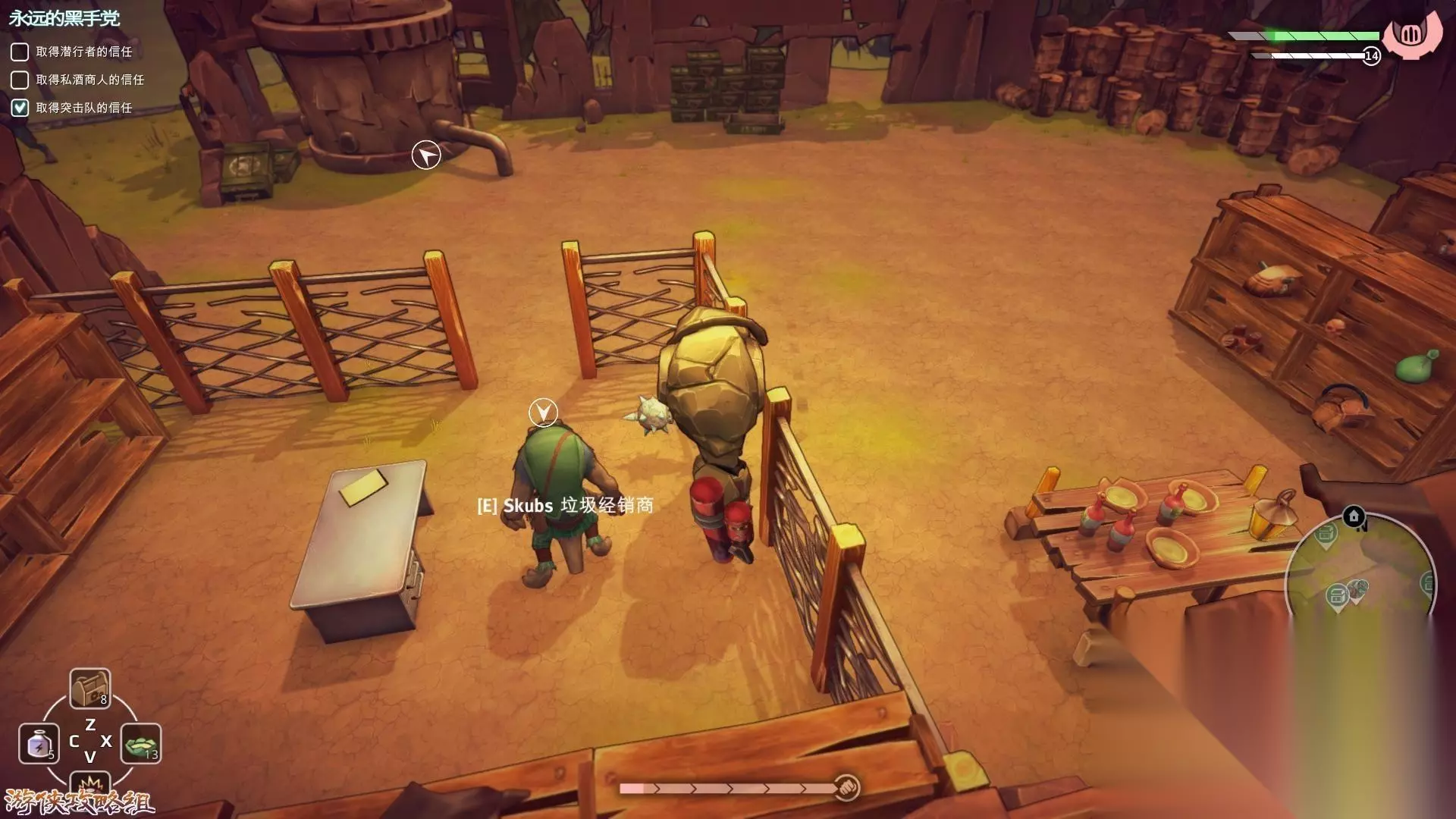 地图三:热浪之握 在不法之地的右下角找到垃圾经销商Skubs,他让我们找一个失踪的兄弟,回到地图热浪之握,全程跟着提示就可以了,没有太多困难。