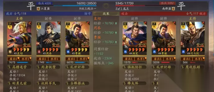 袁绍的威谋靡亢、纵兵劫掠等控制战法配合胜战兵书,能在第二回合打出关键爆发;朱俊若带太平道法,兵书优先选暴击路线,焚辎营垒则需搭配禁疗效果最大化;沮授的八门金锁阵提供先攻优势,无当飞军补充伤害。注意速度加点,袁绍建议面板180朱俊至少110,确保先手压制。