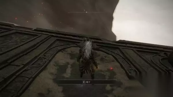 7、跑到图中靠近飓风的凹陷处可以看到互动——躺下。