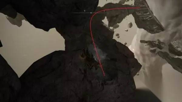 5、左侧悬崖边可以看到下方有浮石,跳上去。