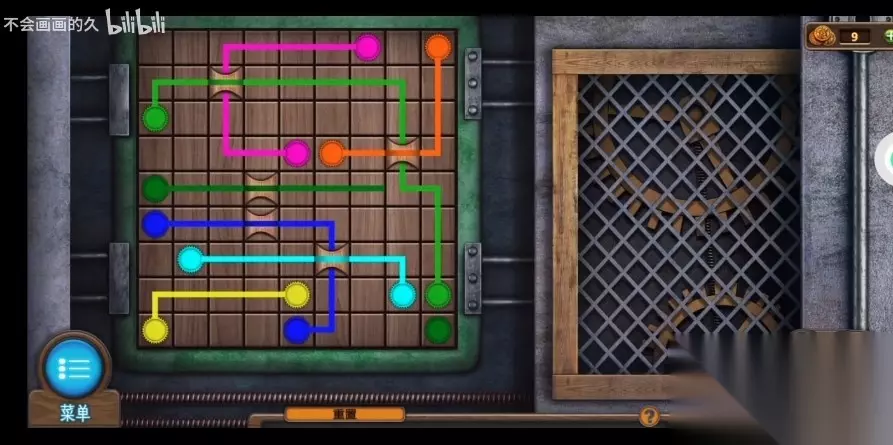 87、将【摇杆】安装于右侧的磨盘上,应用【生锈的刀】得到【刀子】,并捡取磨盘边上的【钢丝】和【束缚】。 88、应用【刀子】切断秋千的绳索得到【绳子】,将【绳子】和【勾子】融合在一块得到带【有钩的绳子】。 89、应用【有钩的绳子】修补吊桥,赶到悬空岛上,捡取柜子上和右侧箱子前【灌丛】,并记住正前石板和右侧碎布里的小鸟图案。 90、应用【钢丝】开启右侧的木柜,如图进行游戏(使画板里的格子和花朵图案总数全是10),打开箱子得到【箱子】和【火药】,记住箱子里边的小鸟图案。