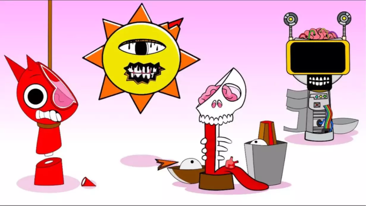 这是一组节奏盒子相关的原创漫画,展示了节奏盒子寒如冰相关的不同角色形态,包含正常形态与恐怖异化形态,是节奏盒子相关的创意同人创作内容。