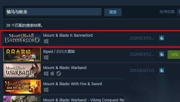 骑马与砍杀2详细介绍: 1、骑马与砍杀2steam上是英文名称叫做:Mount&BladeII: Bannerlord。 2、一般情况下,玩家在steam平台通过中文名字或者英文名字都是可以搜索到的。