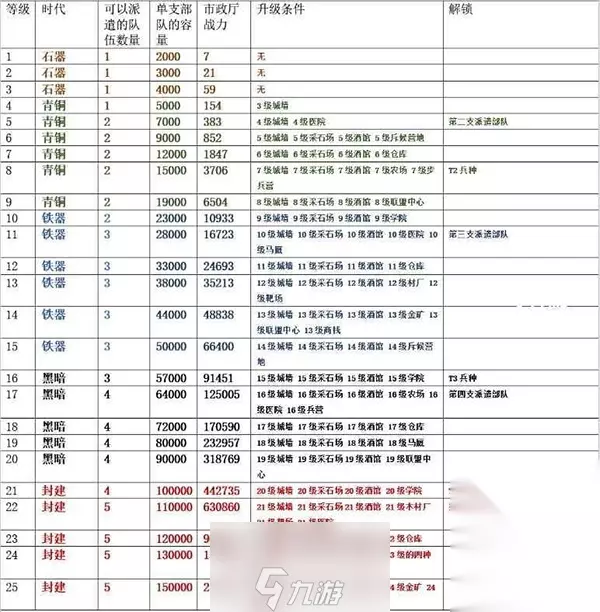 从以上的信息可以看出,市政厅等级越高,好处多多!不仅能够解锁和升级更多的建筑物,还能增加可以派遣队伍的数量。 随着派遣队伍数量的提升(最多五支部队),大家采集的效率也会越来越高!每天更多的资源收入意味着更快的游戏进度!其次,市政厅等级越高也意味着单支部队的基础容量也会越高,在前期战斗时也是一种优势!