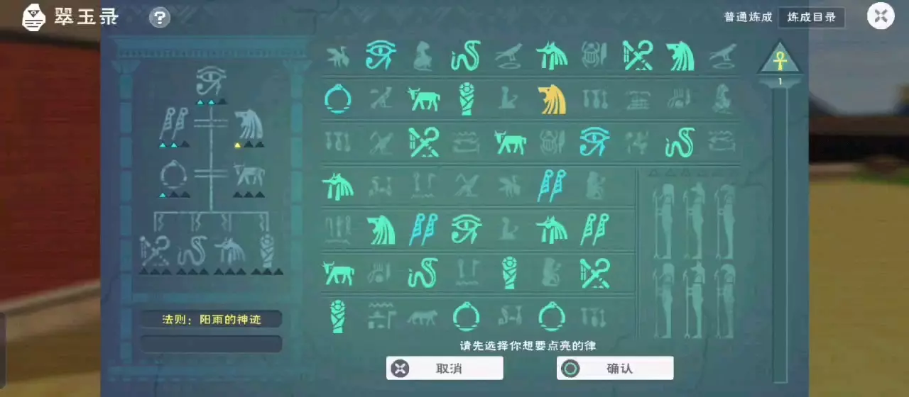 指路: 0:19-0:57翠玉录的分布位置&空灵棱锥的获取方式&导论 0:57-3:09 炼金基本流程 3:09-5:13 真理&法则&黄金法则的构成解释 5:13-6:37 炼金拼凑真理与法则的推荐原则&分析步骤演示 6:37-8;48 贤者之石简介&怼次数套路论 律 合成的基本元素 法则 一个父神带两个子神 黄金法则 拉(最高神)带他的两个子神 真理 奇迹(金) 2真理/2黄金法则 大师(紫) 1真理+1法则/2法则(相同) 杰出(蓝) 1真理 稀有(绿) 2法则(不相同) 普通(白) 1法则