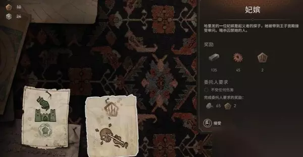 十七、妃嫔 接取到任务后通过俯瞰点,前往库尔德王子宫殿暗杀队长。并且满足委托人要求不受任何伤害,否则会影响任务的完成情况。 点此查看攻略详情>>>《刺客信条幻景》合约篇妃嫔怎么做 合约妃嫔任务攻略