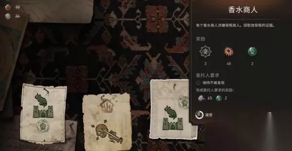十、香水商人 根据任务需要窃取香水商人背叛的证据,玩家接取到任务后通过俯瞰点,前往卡尔克抵达炼油区开始任务,完成任务后玩家可获得罗斯坦服装升级设计图。 点此查看攻略详情>>>《刺客信条幻景》合约篇香水商人怎么做 合约香水商人任务流程
