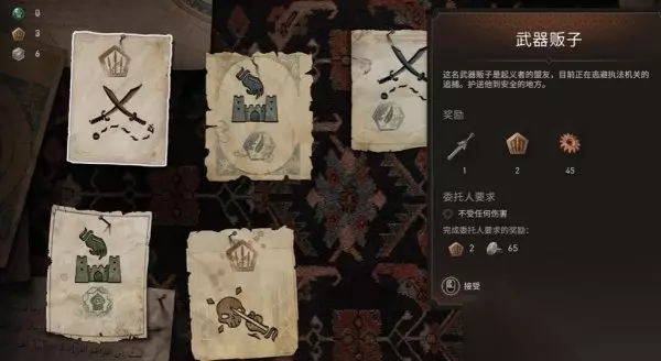 十五、武器贩子 护送武器贩子到安全的地方,玩家接取到任务后通过住宅区俯瞰点,前往住宅区与武器贩子见面。玩家完成任务可获得罗斯坦之剑。 点此查看攻略详情>>>《刺客信条幻景》合约篇武器贩子怎么做 合约武器贩子任务流程