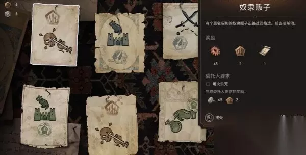 十六、奴隶贩子 玩家接取到任务后通过俯瞰点,前往上湾区暗杀奴隶贩子。执行任务时需要满足委托人要求用火杀死,否则会影响任务的完成情况。 点此查看攻略详情>>>《刺客信条幻景》合约篇奴隶贩子怎么做 合约奴隶贩子任务流程