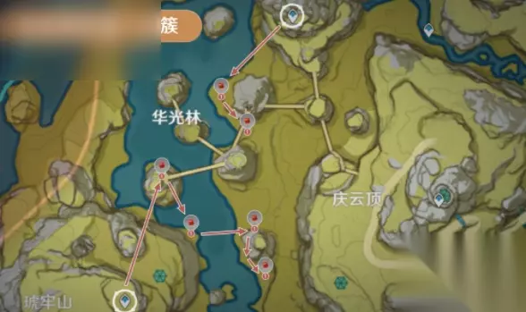 5、绝云间 数量:30个,峡谷边缘采集点位多,部分处于开阔地带,视野更好,但也要注意观察。